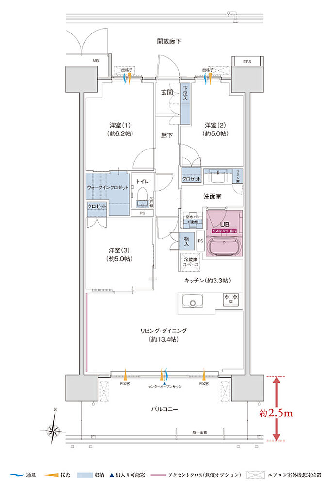 | バルコニー面積 | 13.25㎡ ~ 15.50㎡ |
