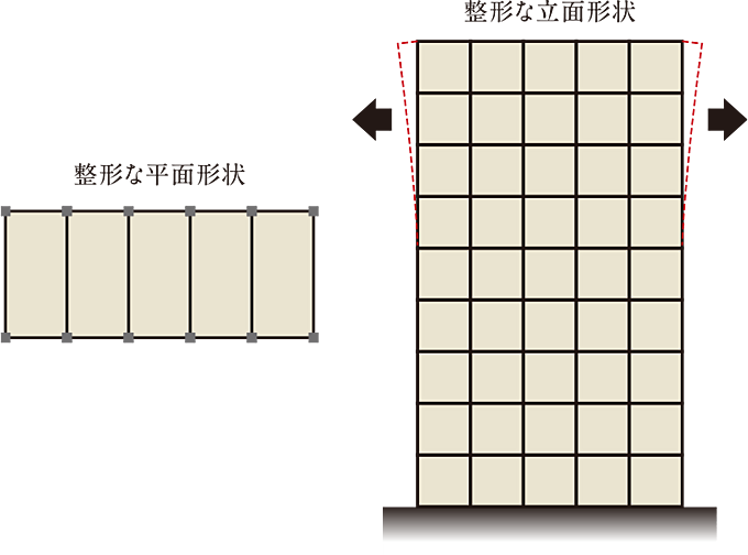 平面形状はスクエアが基本。万一の大地震発生時、局所的に負荷がかかりにくい明快で均整の取れた形状です。※概念図
