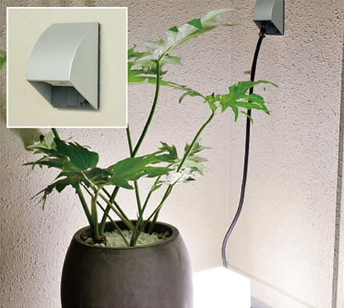 防水仕様コンセントをバルコニーに設置。照明など電気器具の電源が必要な時に便利です。※参考写真