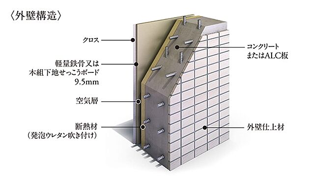 外壁の室内側に設けた断熱材により、冷気・熱気の侵入を抑え、快適な室内環境を保ちます。※image