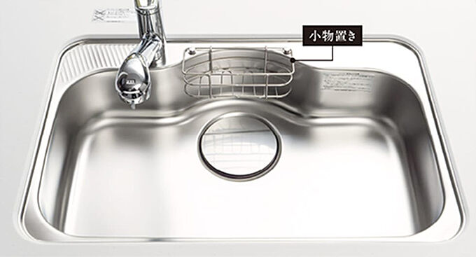 大型サイズのシンクには騒音を低減する制振構造を採用。小物置きも標準装備しました。※参考写真
