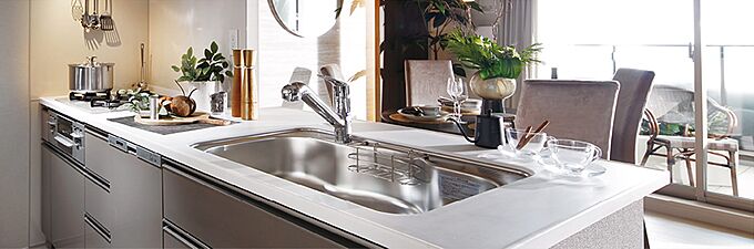 キッチンタイムも充実できる、そんなアイテムを揃えました。調理や洗い物などのため、使いやすく機能的であることが求められるキッチン。使い勝手に配慮した、入居者に嬉しい設備を整えています。