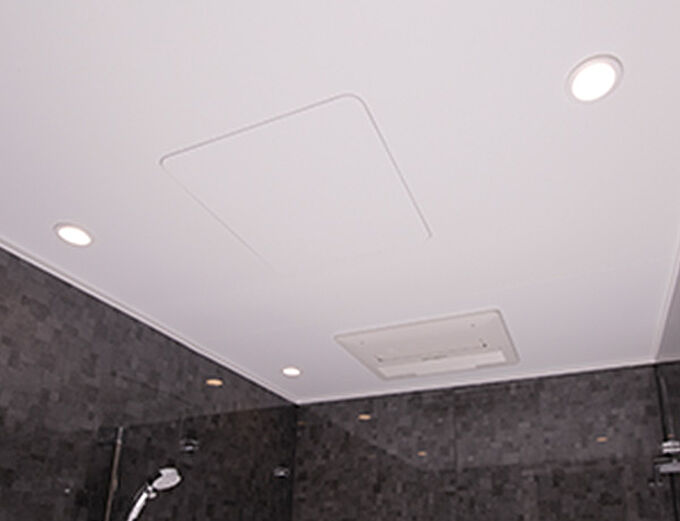 天井に埋め込んだ「LEDダウンライト」は、バスルーム全体をほのかに照らし、寛ぎのバスタイムを演出します。