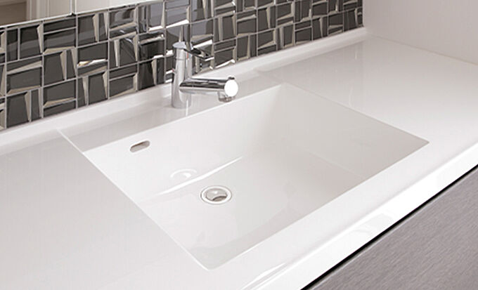 洗面ボウルには、デザイン性の高いハーフベッセル型ボウルを採用しました。耐久性にも優れ、お手入れも簡単です。※タイプによっては、ボウル一体型カウンターもご用意しています。