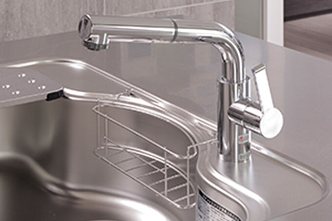 シンクの排水口にディスポーザーを設置。調理時に出た生ゴミ※をすぐさま粉砕処理します。破砕室バスケットが取り出せて、簡単にきれいに洗え、ニオイや汚れが無く清潔を保てます。※ゴミの種類によっては処理できないものがあります。