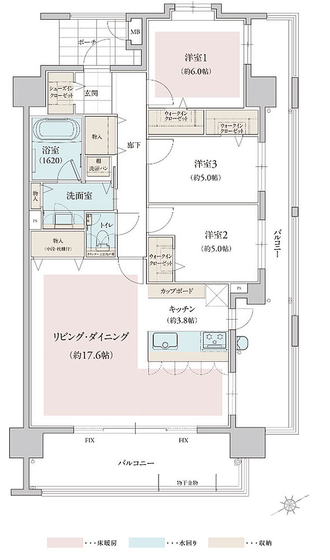 タイプ C【select1】 所在階数 - 価格 - 間取り 3LDK 専有面積 72.45㎡ バルコニー 13.80㎡ 備考 ※掲載の室内パースは有償オプション、設計変更(いずれも申込期限有)が含まれています。家具、調度品は販売価格に含まれません。 -