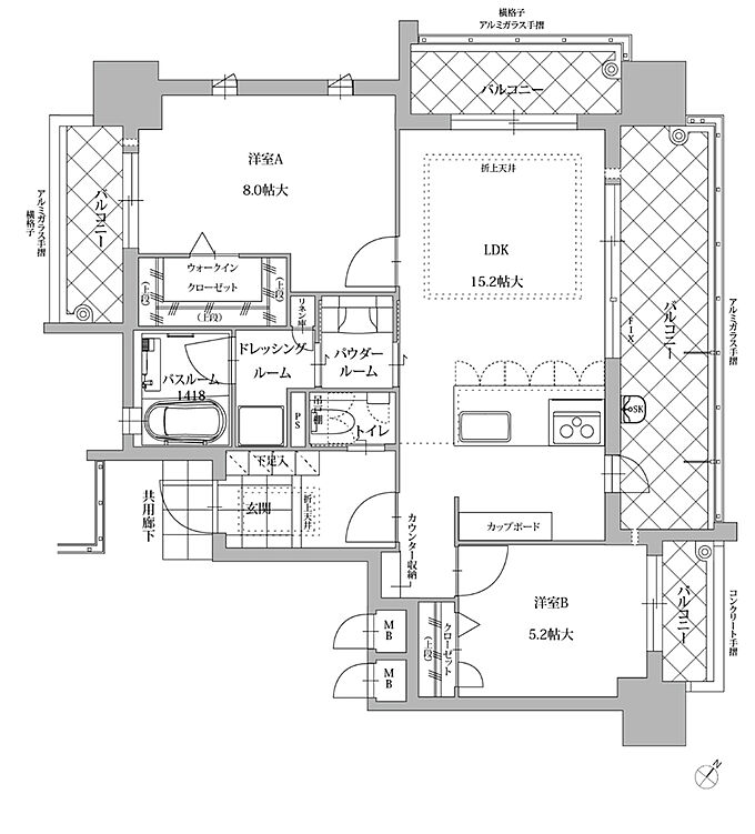■大型バルコニーを2面に備えた角住戸4LDK